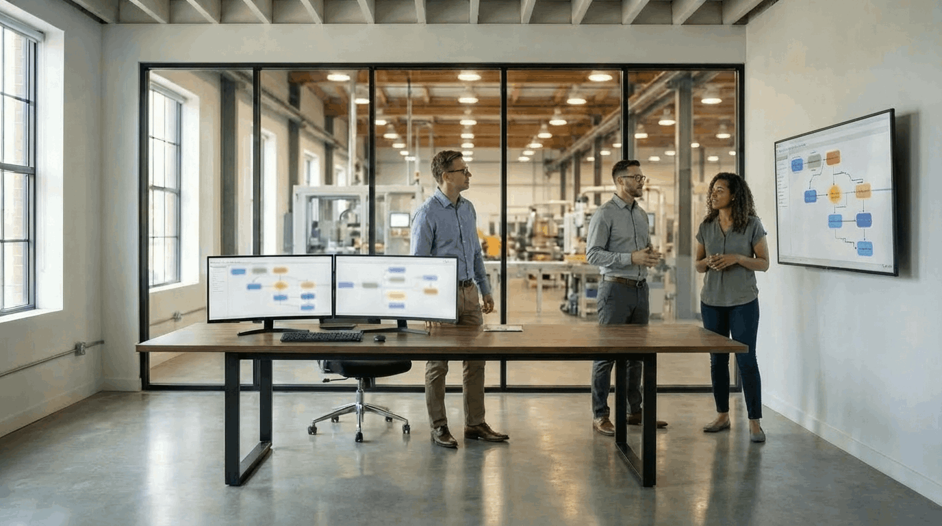 Das Prozessmodell Mittelstand stellt eine erprobte Referenzstruktur bereit, mit der Prozesslandkarten schnell und vollständig aufgebaut werden können. Es schafft Orientierung über alle zentralen Wertschöpfungs- und Unterstützungsprozesse und dient als stabile Grundlage für Prozessanalysen, Potenzialbewertungen und die Identifikation von Automatisierungsmöglichkeiten.